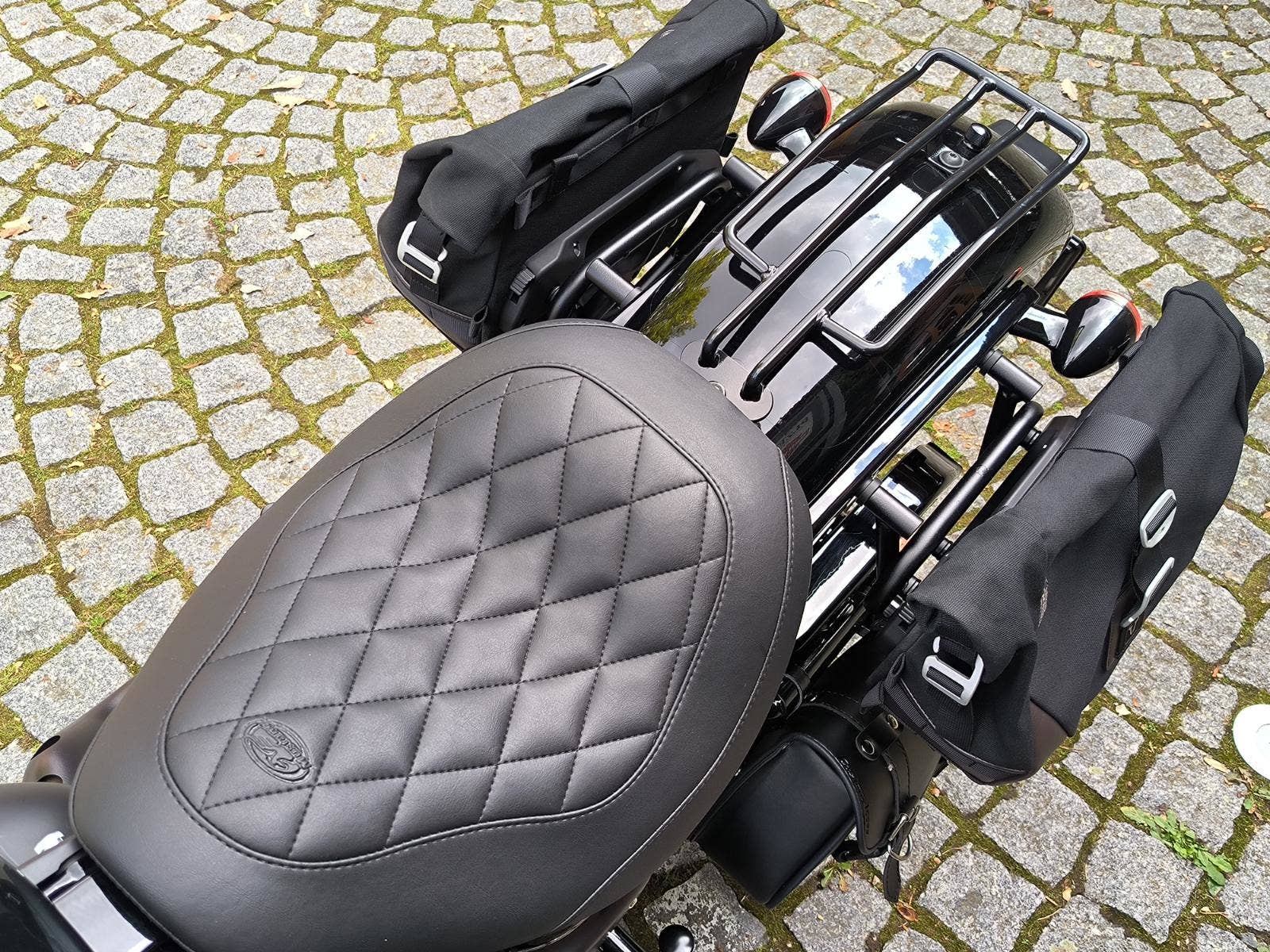 Doplňky: elektronické výfuky Jekill& Hyde v hodnotě 90 000, (3 nastavitelné režimy zvuku), boční odnímatelné brašny + kožená boční brašna, kožená rolka, padací rám, doplňková řídítka + stupačky řidiče a spolujezdce + brzda a řadička, sedlo Mustang, nosič za sedlo řidiče, gripy, kaplička nad předním světlem, kryt chladiče, LED přední blinkry. Všechny původní díly jsou v ceně motocyklu a budou předány spolu s ním.