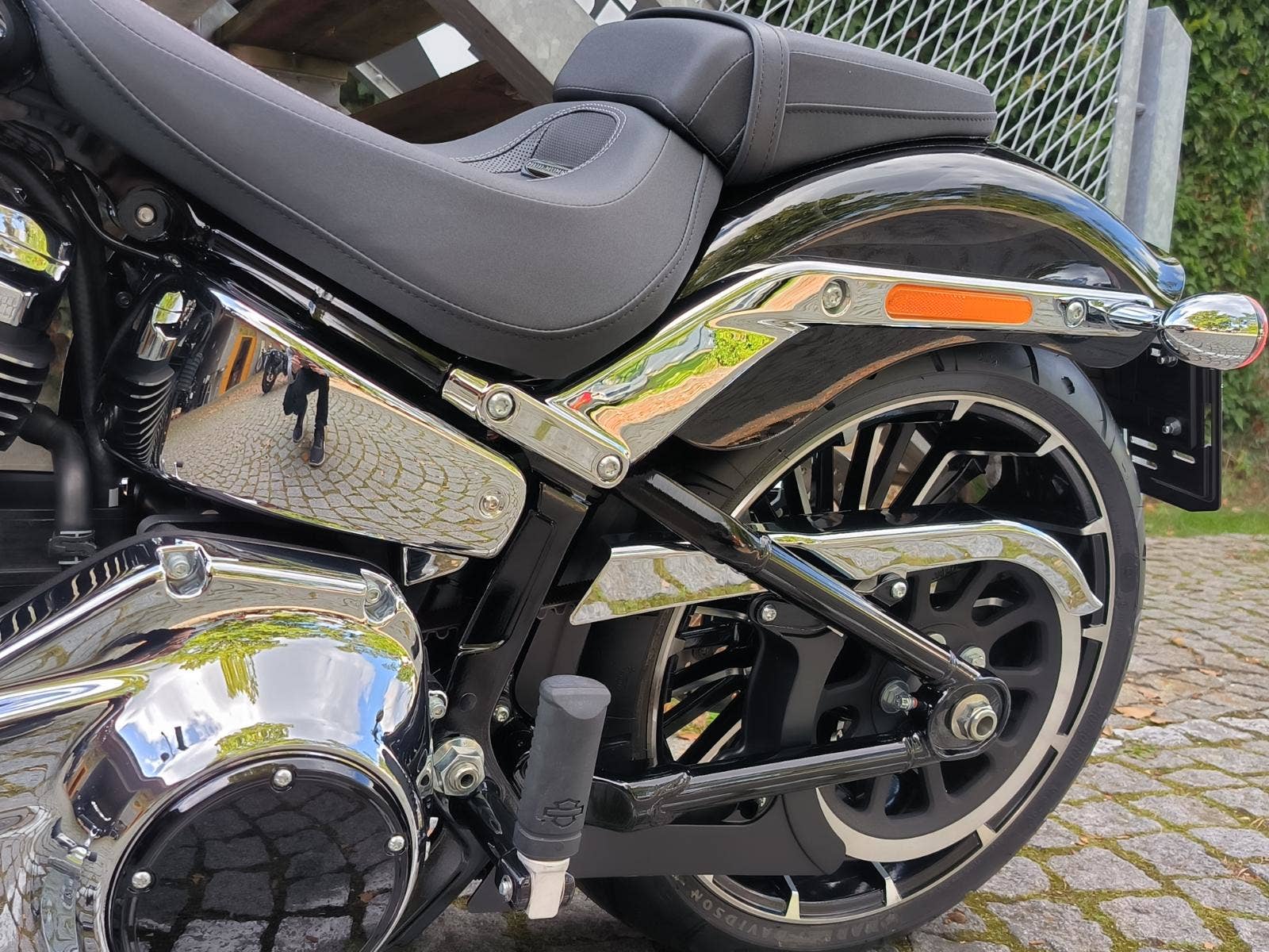 Díky široké zadní pneumatice, zadnímu blatníku ve stylu bobtail, dopředu vysunutému 21palcovému přednímu kolu a rovným řídítkům spojuje Breakout klasický styl chopperu s výkonem pohonné jednotky Milwaukee-Eight (R) 117 Custom.